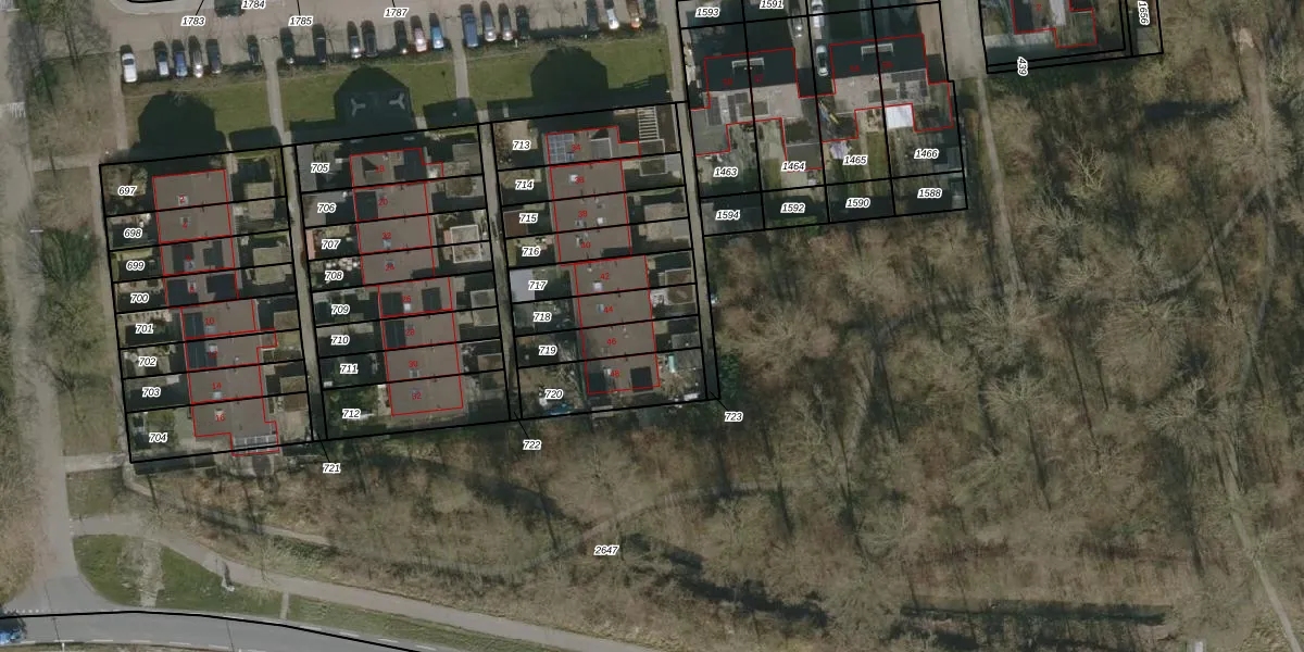 Gebruik de zoekbalk of klik op een perceel voor informatie over de adressen binnen dit perceel.