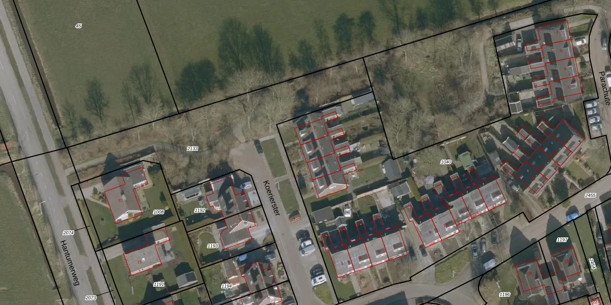 Het perceel waarop Koerierster 6 staat heeft een oppervlakte van 4965 m². Dit is een zeer groot perceel. De perceeloppervlakte wordt geregistreerd door het Kadaster. Gedetailleerde informatie over de maten van dit perceel kunt u vinden in het rapport Kadastrale kaart met maatvoering van Koerierster 6.