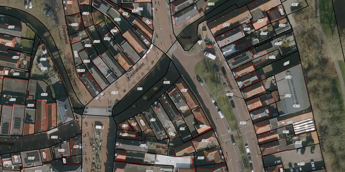 Het perceel waarop Koornmarkt 14-A staat heeft een oppervlakte van 186 m². Dit is een middelgroot perceel. De perceeloppervlakte wordt geregistreerd door het Kadaster. Gedetailleerde informatie over de maten van dit perceel kunt u vinden in het rapport Kadastrale kaart met maatvoering van Koornmarkt 14-A.