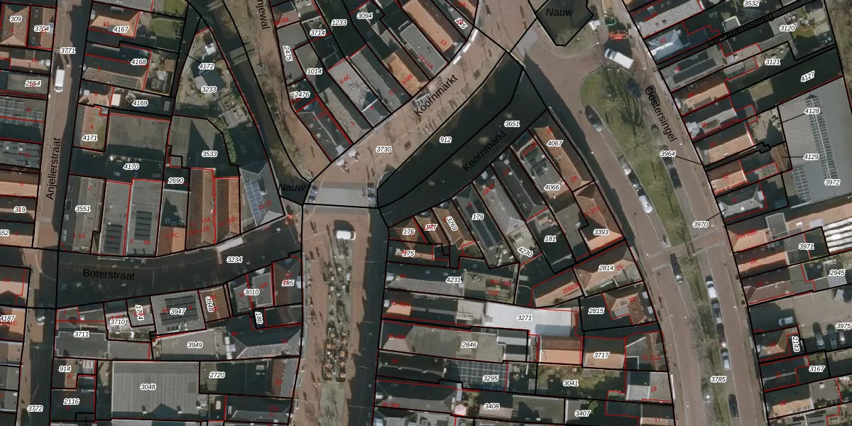 Het perceel waarop Koornmarkt 4-A staat heeft een oppervlakte van 36 m². Dit is een klein perceel. De perceeloppervlakte wordt geregistreerd door het Kadaster. Gedetailleerde informatie over de maten van dit perceel kunt u vinden in het rapport Kadastrale kaart met maatvoering van Koornmarkt 4-A.
