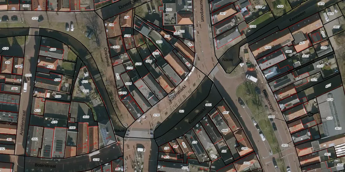 Het perceel waarop Koornmarkt 9-B staat heeft een oppervlakte van 199 m². Dit is een middelgroot perceel. De perceeloppervlakte wordt geregistreerd door het Kadaster. Gedetailleerde informatie over de maten van dit perceel kunt u vinden in het rapport Kadastrale kaart met maatvoering van Koornmarkt 9-B.