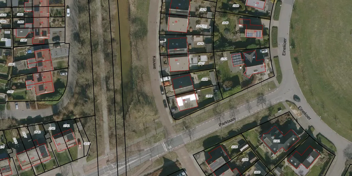 Het perceel waarop Kouwe 22 staat heeft een oppervlakte van 325 m². Dit is een groot perceel. De perceeloppervlakte wordt geregistreerd door het Kadaster. Gedetailleerde informatie over de maten van dit perceel kunt u vinden in het rapport Kadastrale kaart met maatvoering van Kouwe 22.