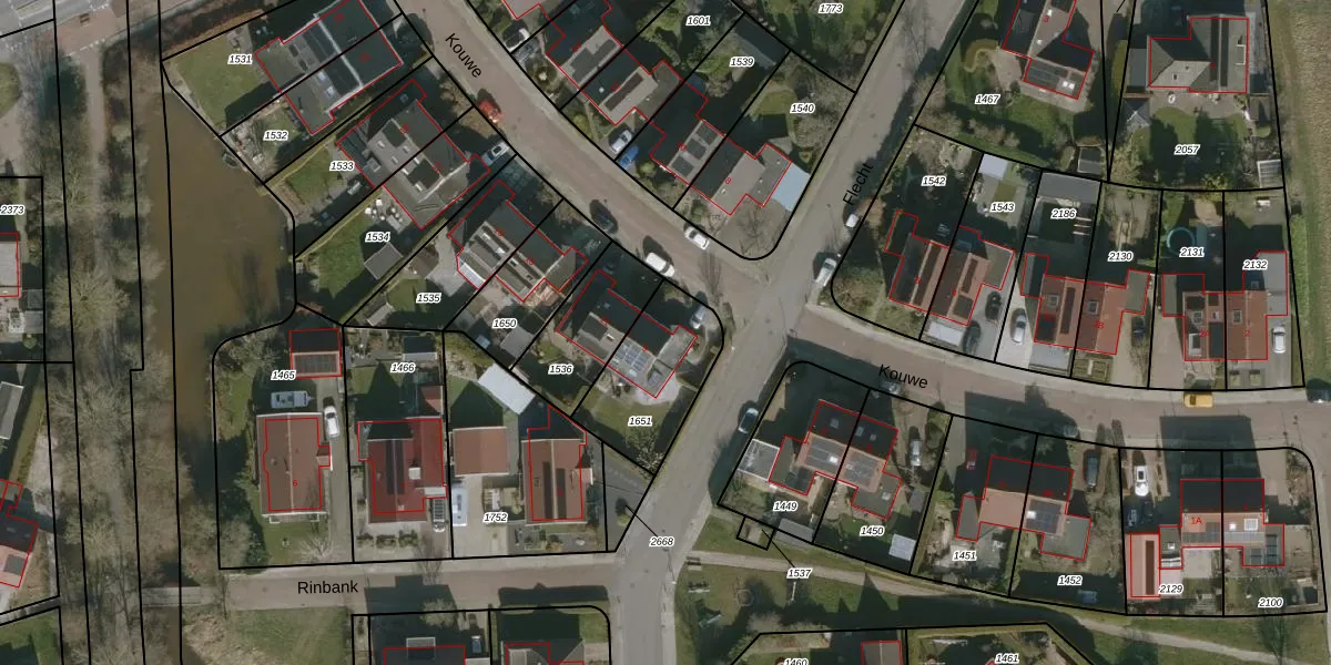 Het perceel waarop Kouwe 9 staat heeft een oppervlakte van 352 m². Dit is een groot perceel. De perceeloppervlakte wordt geregistreerd door het Kadaster. Gedetailleerde informatie over de maten van dit perceel kunt u vinden in het rapport Kadastrale kaart met maatvoering van Kouwe 9.