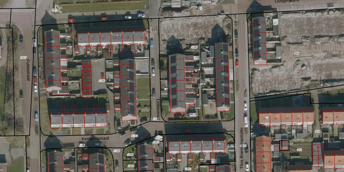Het perceel waarop Liobastraat 5 staat heeft een oppervlakte van 2600 m². Dit is een zeer groot perceel. De perceeloppervlakte wordt geregistreerd door het Kadaster. Gedetailleerde informatie over de maten van dit perceel kunt u vinden in het rapport Kadastrale kaart met maatvoering van Liobastraat 5.