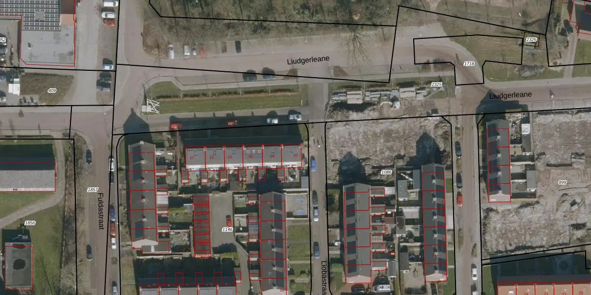 Het perceel waarop Liudgerleane 20 staat heeft een oppervlakte van 4175 m². Dit is een zeer groot perceel. De perceeloppervlakte wordt geregistreerd door het Kadaster. Gedetailleerde informatie over de maten van dit perceel kunt u vinden in het rapport Kadastrale kaart met maatvoering van Liudgerleane 20.