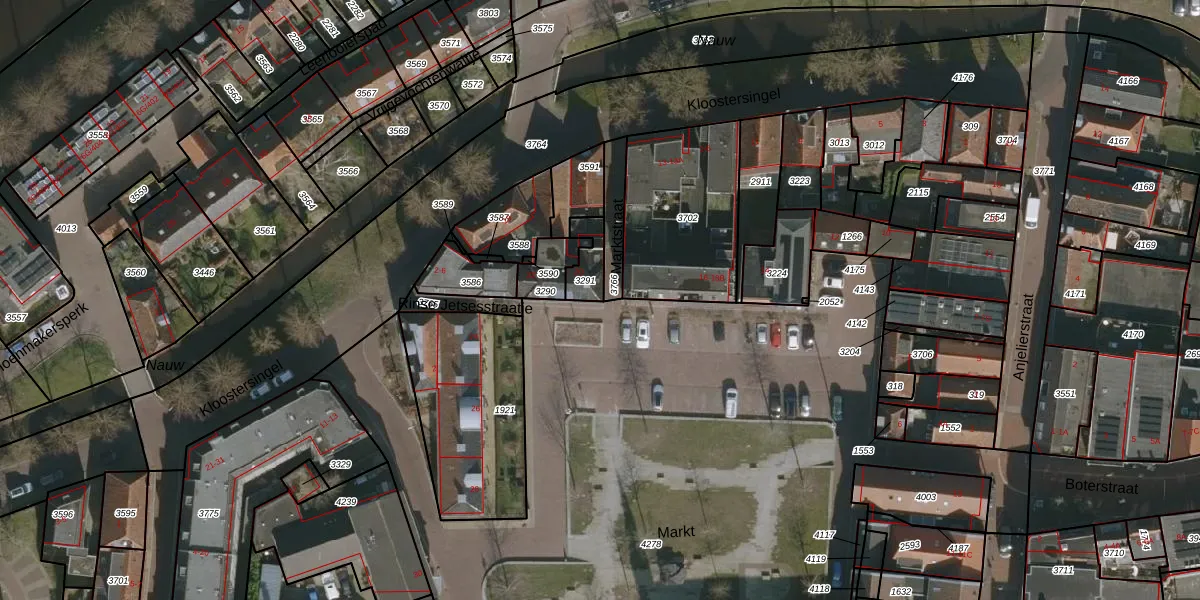 Het perceel waarop Markt 20 staat heeft een oppervlakte van 70 m². Dit is een klein perceel. De perceeloppervlakte wordt geregistreerd door het Kadaster. Gedetailleerde informatie over de maten van dit perceel kunt u vinden in het rapport Kadastrale kaart met maatvoering van Markt 20.