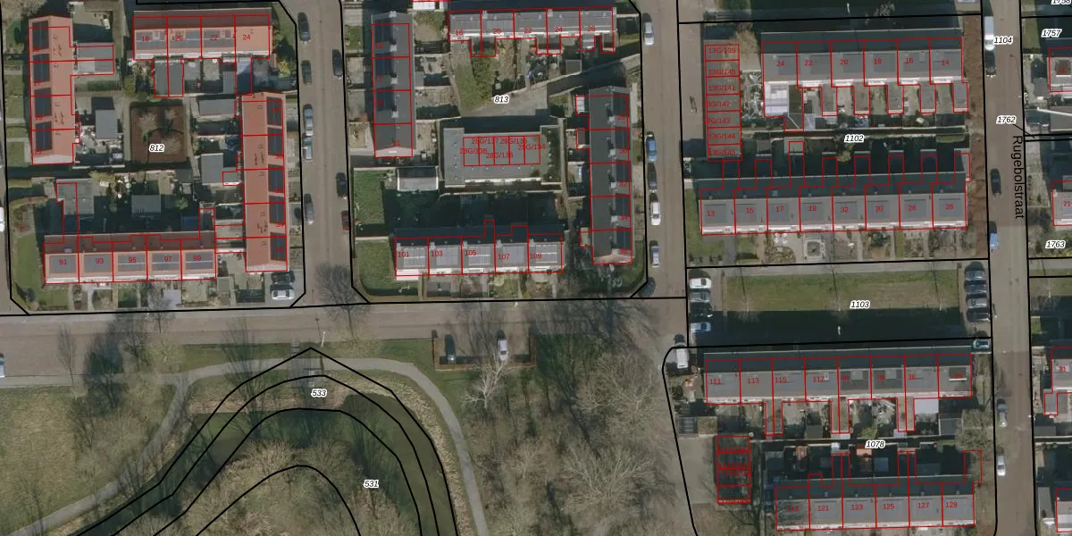 Het perceel waarop Mearsloatswal 109 staat heeft een oppervlakte van 5755 m². Dit is een zeer groot perceel. De perceeloppervlakte wordt geregistreerd door het Kadaster. Gedetailleerde informatie over de maten van dit perceel kunt u vinden in het rapport Kadastrale kaart met maatvoering van Mearsloatswal 109.