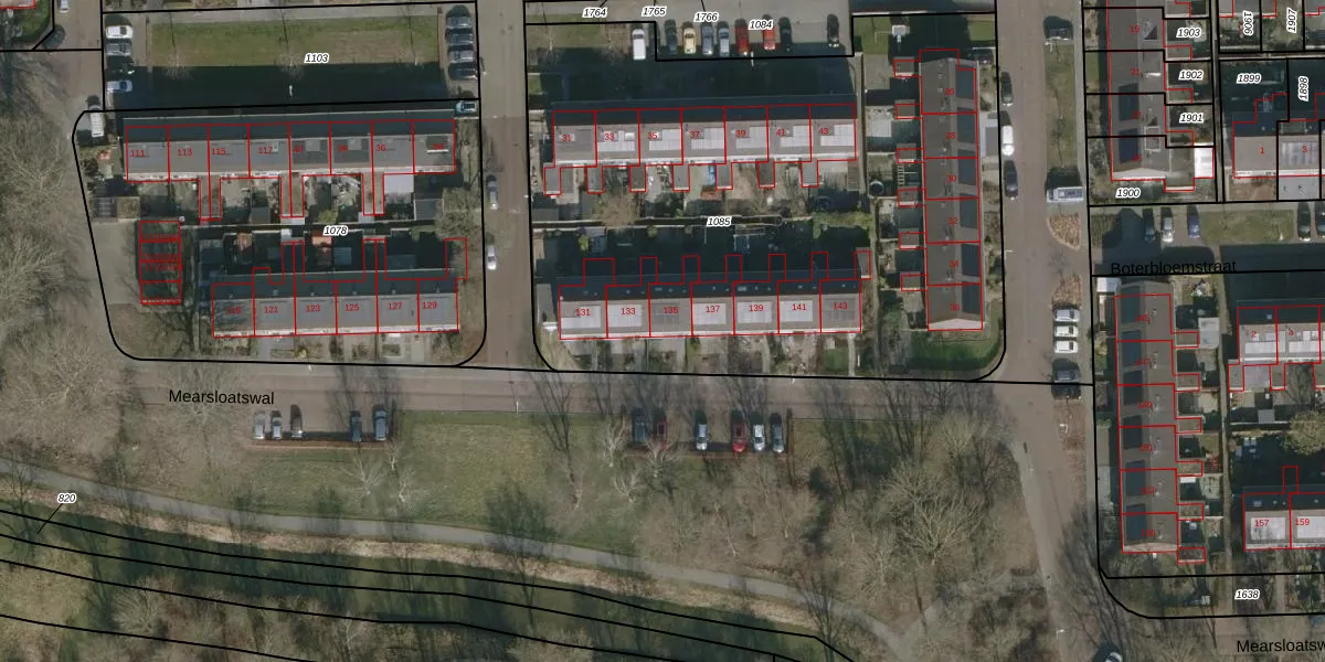 Het perceel waarop Mearsloatswal 135 staat heeft een oppervlakte van 3660 m². Dit is een zeer groot perceel. De perceeloppervlakte wordt geregistreerd door het Kadaster. Gedetailleerde informatie over de maten van dit perceel kunt u vinden in het rapport Kadastrale kaart met maatvoering van Mearsloatswal 135.