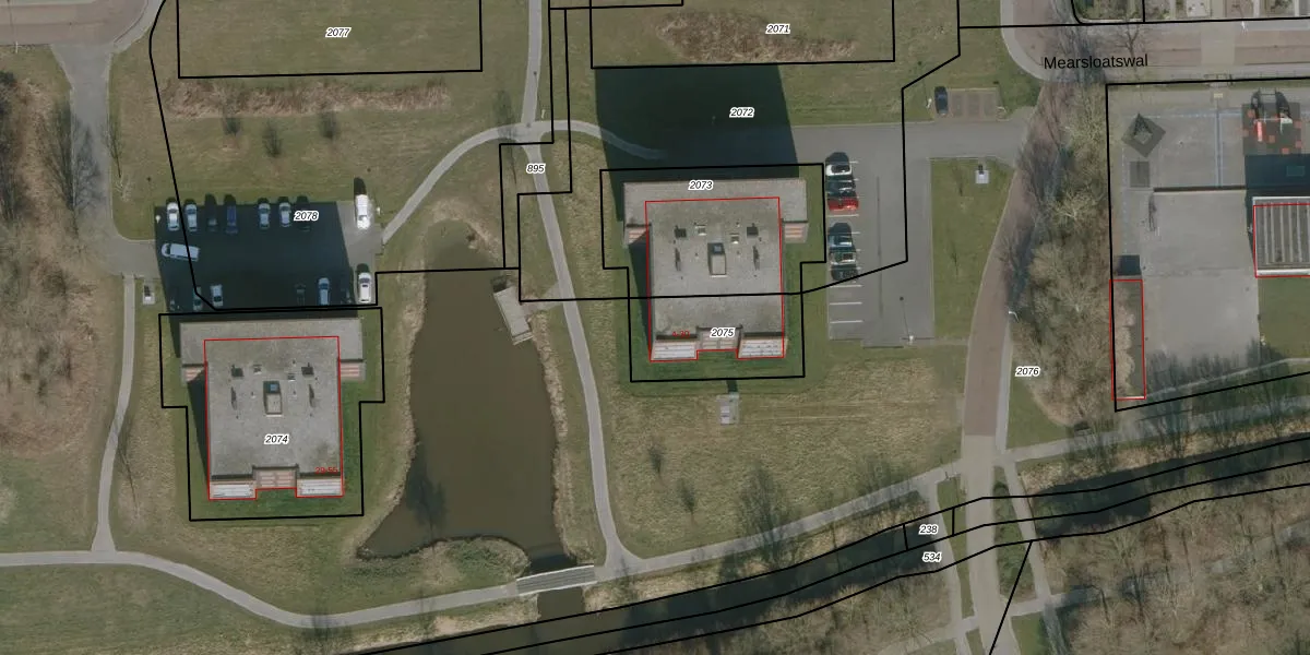 Het perceel waarop Mearsloatswal 18 staat heeft een oppervlakte van 335 m². Dit is een groot perceel. De perceeloppervlakte wordt geregistreerd door het Kadaster. Gedetailleerde informatie over de maten van dit perceel kunt u vinden in het rapport Kadastrale kaart met maatvoering van Mearsloatswal 18.