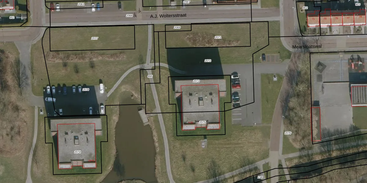 Het perceel waarop Mearsloatswal 20 staat heeft een oppervlakte van 630 m². Dit is een groot perceel. De perceeloppervlakte wordt geregistreerd door het Kadaster. Gedetailleerde informatie over de maten van dit perceel kunt u vinden in het rapport Kadastrale kaart met maatvoering van Mearsloatswal 20.