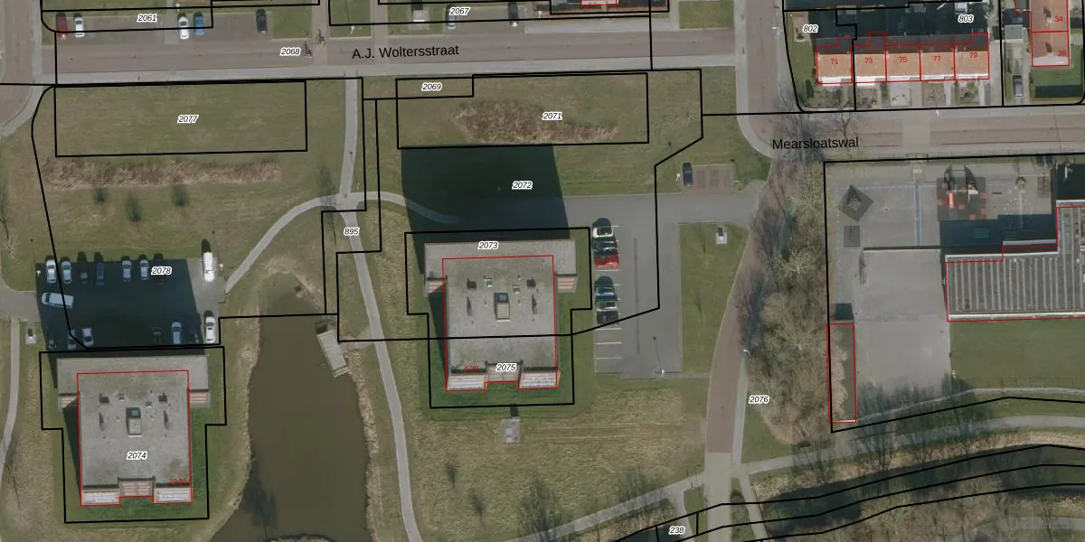 Het perceel waarop Mearsloatswal 22 staat heeft een oppervlakte van 630 m². Dit is een groot perceel. De perceeloppervlakte wordt geregistreerd door het Kadaster. Gedetailleerde informatie over de maten van dit perceel kunt u vinden in het rapport Kadastrale kaart met maatvoering van Mearsloatswal 22.