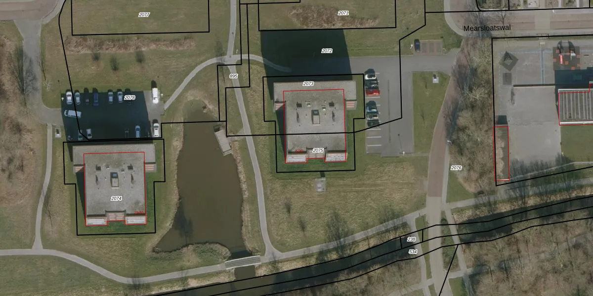 Het perceel waarop Mearsloatswal 6 staat heeft een oppervlakte van 335 m². Dit is een groot perceel. De perceeloppervlakte wordt geregistreerd door het Kadaster. Gedetailleerde informatie over de maten van dit perceel kunt u vinden in het rapport Kadastrale kaart met maatvoering van Mearsloatswal 6.