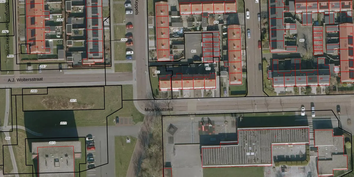 Het perceel waarop Mearsloatswal 73 staat heeft een oppervlakte van 548 m². Dit is een groot perceel. De perceeloppervlakte wordt geregistreerd door het Kadaster. Gedetailleerde informatie over de maten van dit perceel kunt u vinden in het rapport Kadastrale kaart met maatvoering van Mearsloatswal 73.