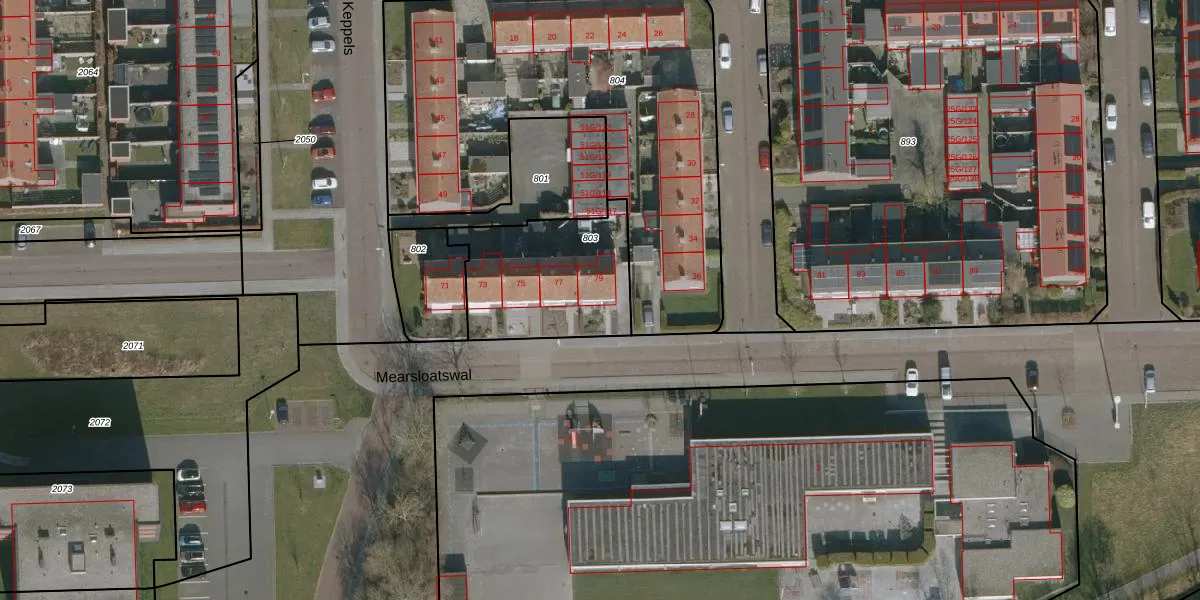 Het perceel waarop Mearsloatswal 79 staat heeft een oppervlakte van 548 m². Dit is een groot perceel. De perceeloppervlakte wordt geregistreerd door het Kadaster. Gedetailleerde informatie over de maten van dit perceel kunt u vinden in het rapport Kadastrale kaart met maatvoering van Mearsloatswal 79.
