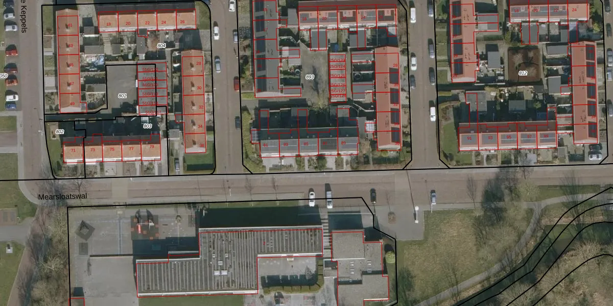 Het perceel waarop Mearsloatswal 85 staat heeft een oppervlakte van 4185 m². Dit is een zeer groot perceel. De perceeloppervlakte wordt geregistreerd door het Kadaster. Gedetailleerde informatie over de maten van dit perceel kunt u vinden in het rapport Kadastrale kaart met maatvoering van Mearsloatswal 85.