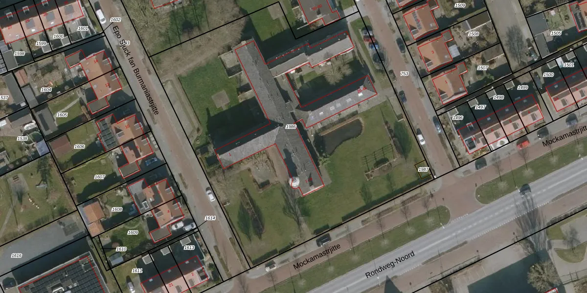 Het perceel waarop Mockamastrjitte 12 staat heeft een oppervlakte van 5189 m². Dit is een zeer groot perceel. De perceeloppervlakte wordt geregistreerd door het Kadaster. Gedetailleerde informatie over de maten van dit perceel kunt u vinden in het rapport Kadastrale kaart met maatvoering van Mockamastrjitte 12.