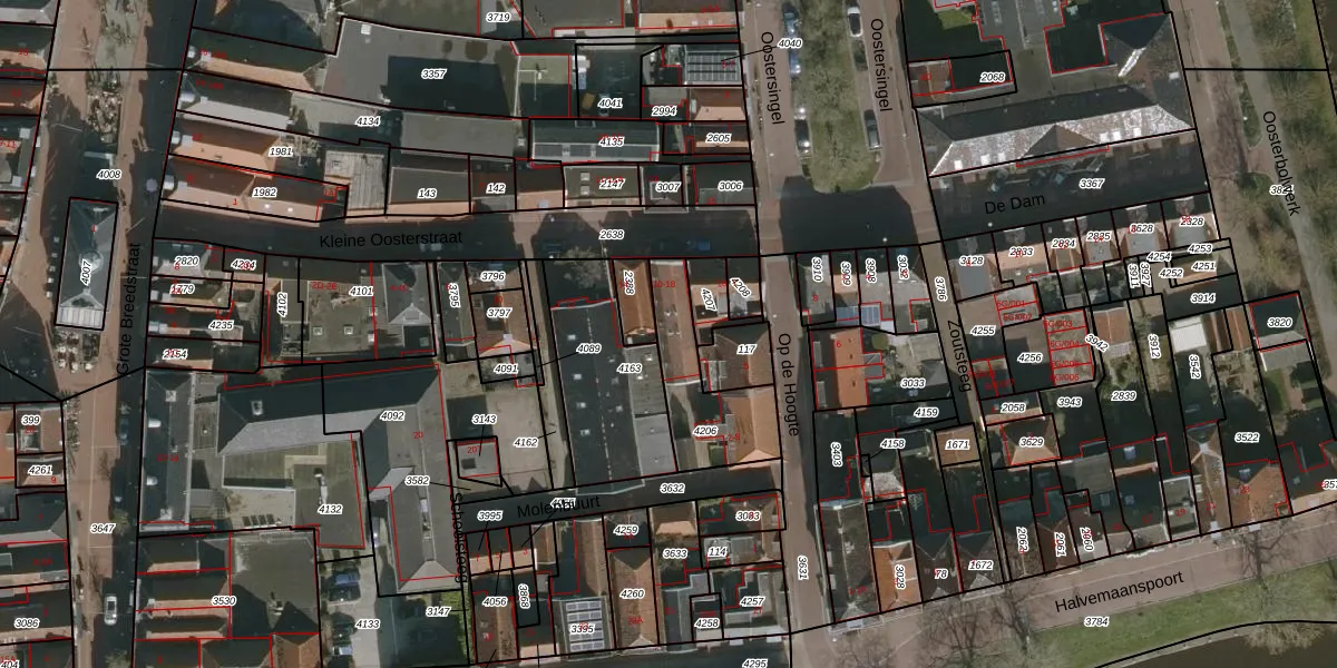 Het adres is gelegen op perceel 4206 in de sectie A en de kadastrale gemeente Dokkum. De kadastrale aanduiding is aldus DKM00-A-4206. Het perceel is kleiner dan gemiddeld in Dokkum. Het perceel is 297 m² groot, terwijl het gemiddelde ligt op 1422,1 m². De grootste perceeloppervlakte in de kadastrale gemeente is 16,2 ha. De kleinste oppervlakte bedraagt 0 m². Op het perceel zijn 9 adressen aanwezig. De huidige grenzen van het perceel zijn digitaal in de Basisregistratie Kadaster (BRK) geregistreerd op 14-09-2016.