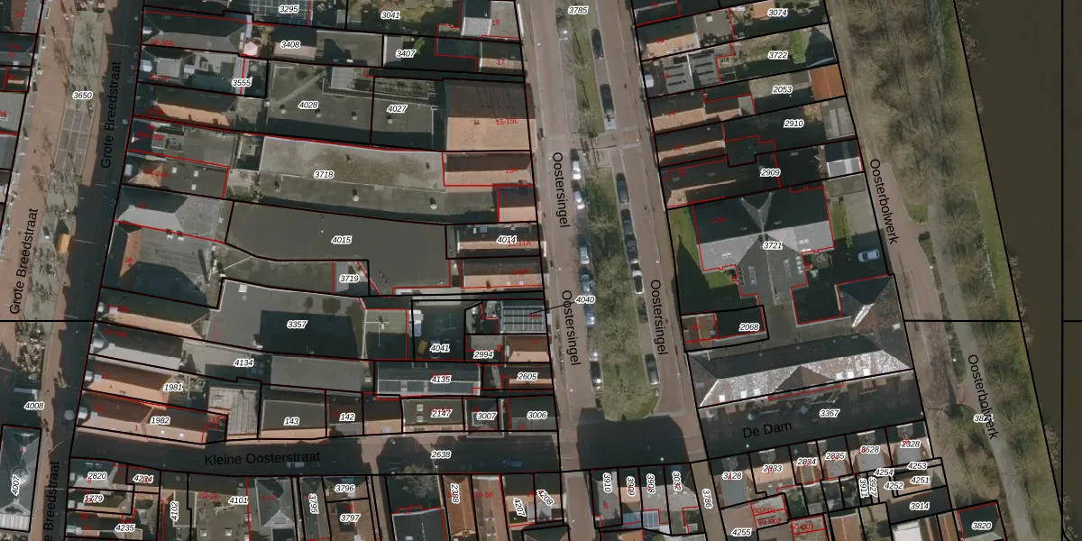 Het perceel waarop Oostersingel 9 staat heeft een oppervlakte van 550 m². Dit is een groot perceel. De perceeloppervlakte wordt geregistreerd door het Kadaster. Gedetailleerde informatie over de maten van dit perceel kunt u vinden in het rapport Kadastrale kaart met maatvoering van Oostersingel 9.