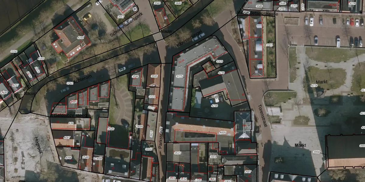 Het perceel waarop Parksteeg 8 staat heeft een oppervlakte van 685 m². Dit is een groot perceel. De perceeloppervlakte wordt geregistreerd door het Kadaster. Gedetailleerde informatie over de maten van dit perceel kunt u vinden in het rapport Kadastrale kaart met maatvoering van Parksteeg 8.