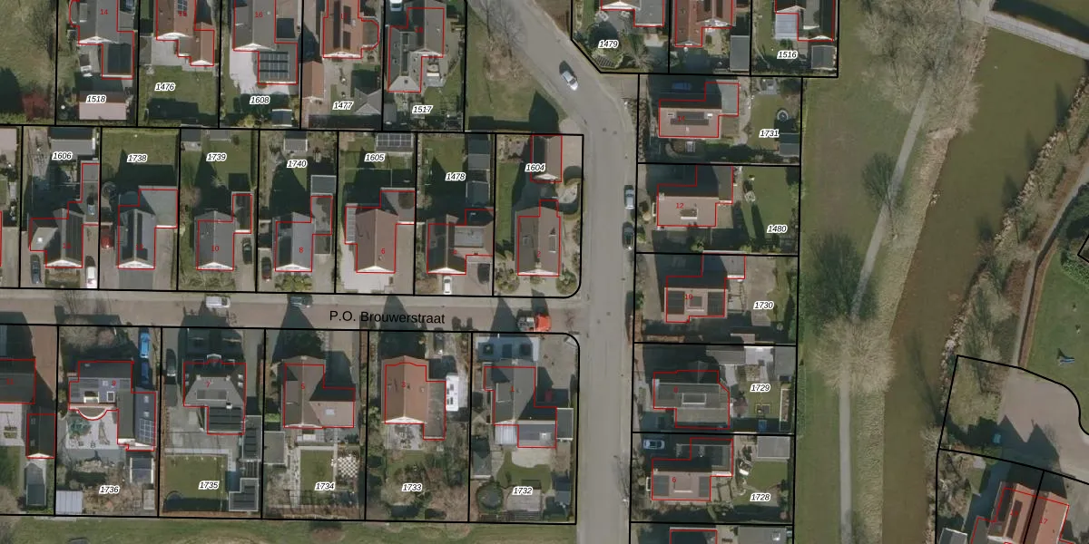 Het perceel waarop P.O. Brouwerstraat 2 staat heeft een oppervlakte van 479 m². Dit is een groot perceel. De perceeloppervlakte wordt geregistreerd door het Kadaster. Gedetailleerde informatie over de maten van dit perceel kunt u vinden in het rapport Kadastrale kaart met maatvoering van P.O. Brouwerstraat 2.