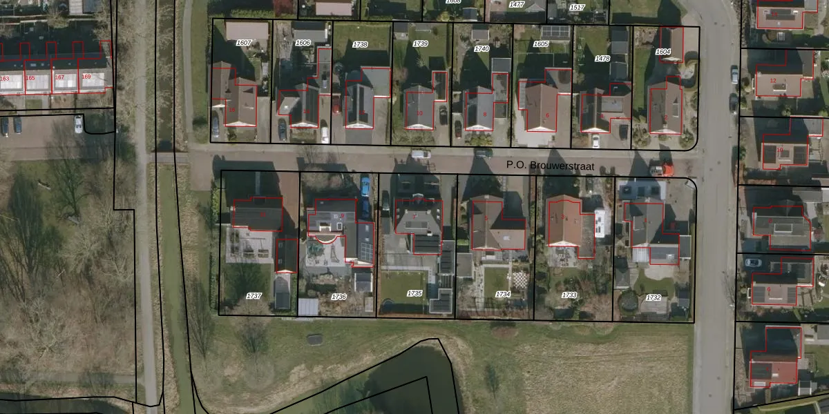 Het perceel waarop P.O. Brouwerstraat 7 staat heeft een oppervlakte van 665 m². Dit is een groot perceel. De perceeloppervlakte wordt geregistreerd door het Kadaster. Gedetailleerde informatie over de maten van dit perceel kunt u vinden in het rapport Kadastrale kaart met maatvoering van P.O. Brouwerstraat 7.