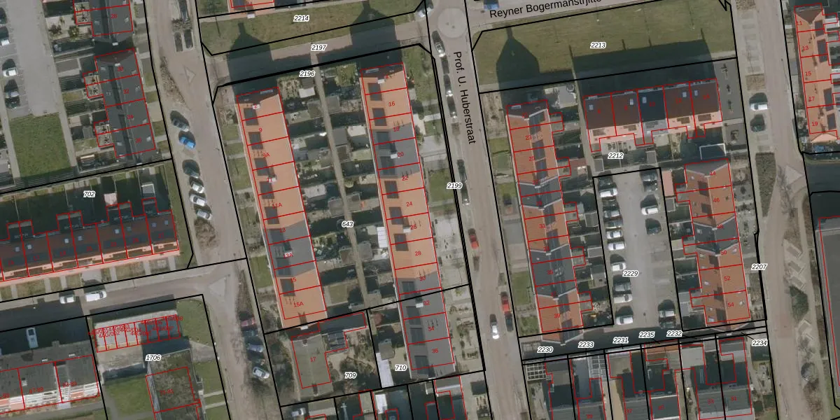 Het perceel waarop Prof. U. Huberstraat 24 staat heeft een oppervlakte van 3080 m². Dit is een zeer groot perceel. De perceeloppervlakte wordt geregistreerd door het Kadaster. Gedetailleerde informatie over de maten van dit perceel kunt u vinden in het rapport Kadastrale kaart met maatvoering van Prof. U. Huberstraat 24.