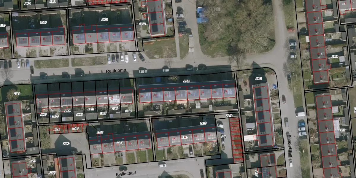 Het perceel waarop Reiddomp 24 staat heeft een oppervlakte van 1242 m². Dit is een zeer groot perceel. De perceeloppervlakte wordt geregistreerd door het Kadaster. Gedetailleerde informatie over de maten van dit perceel kunt u vinden in het rapport Kadastrale kaart met maatvoering van Reiddomp 24.