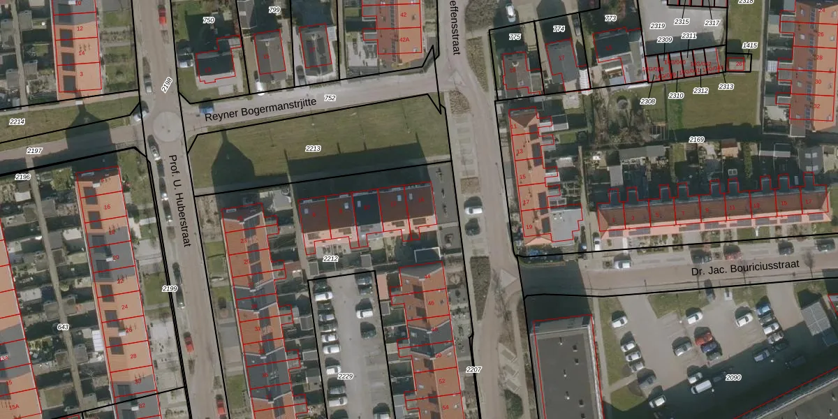 Reyner Bogermanstrjitte 14 is gelegen op kadastraal perceel DKM00B2212. Deze kadastrale aanduiding is uniek en wordt gebruikt door het Kadaster om eigendomsrechten en andere zakelijke rechten vast te leggen. Het perceel maakt onderdeel uit van de kadastrale gemeente Dokkum.
