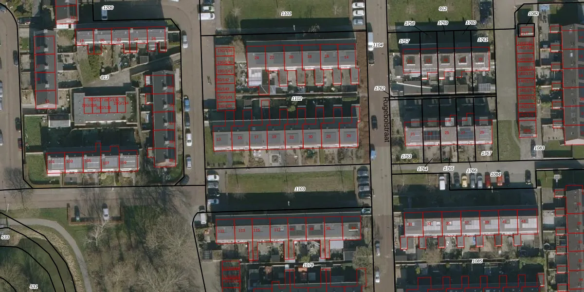 Het perceel waarop Rugebolstraat 32 staat heeft een oppervlakte van 2578 m². Dit is een zeer groot perceel. De perceeloppervlakte wordt geregistreerd door het Kadaster. Gedetailleerde informatie over de maten van dit perceel kunt u vinden in het rapport Kadastrale kaart met maatvoering van Rugebolstraat 32.