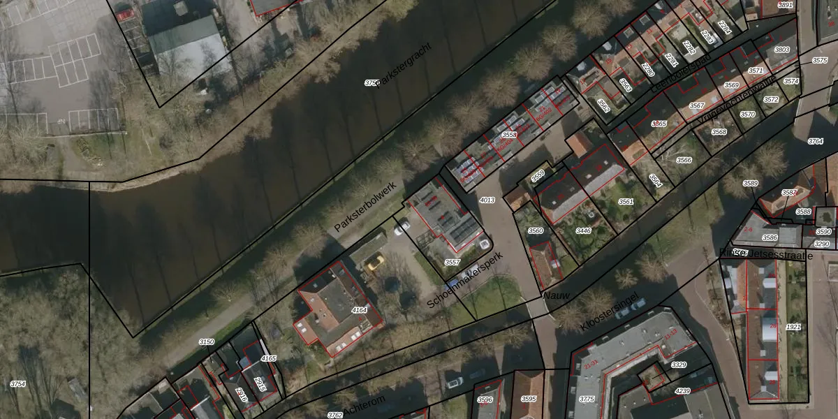 Het adres is gelegen op perceel 3557 in de sectie A en de kadastrale gemeente Dokkum. De kadastrale aanduiding is aldus DKM00-A-3557. Het perceel is kleiner dan gemiddeld in Dokkum. Het perceel is 320 m² groot, terwijl het gemiddelde ligt op 1422,52 m². Het grootste perceel in de kadastrale gemeente is 16,2 ha. Het kleinste perceel heeft een oppervlakte van 0 m². Op het perceel zijn 6 adressen aanwezig. De laatste wijziging in het de Basisregistratie Kadaster (BRK) was op 28-10-1998.