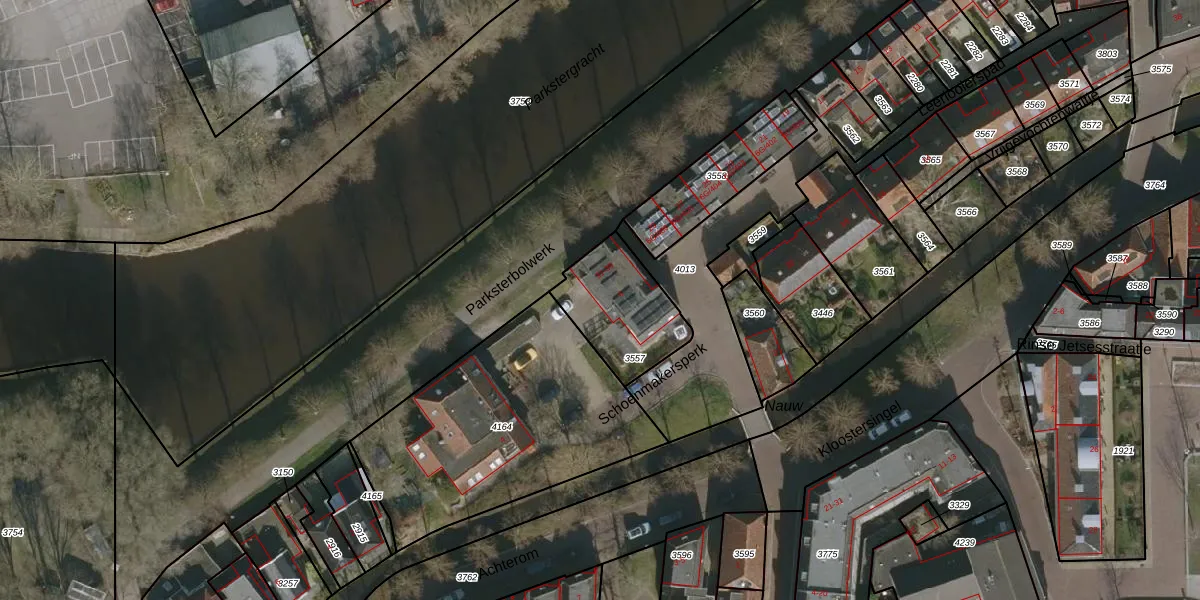 Het adres is gelegen op perceel 3557 in de sectie A en de kadastrale gemeente Dokkum. De kadastrale aanduiding is aldus DKM00-A-3557. Het perceel is kleiner dan gemiddeld in Dokkum. Het perceel is 320 m² groot, terwijl het gemiddelde ligt op 1422,52 m². Het grootste perceel in de kadastrale gemeente is 16,2 ha. Het kleinste perceel heeft een oppervlakte van 0 m². Op het perceel zijn 6 adressen aanwezig. De huidige grenzen van het perceel zijn digitaal in de Basisregistratie Kadaster (BRK) geregistreerd op 28-10-1998.