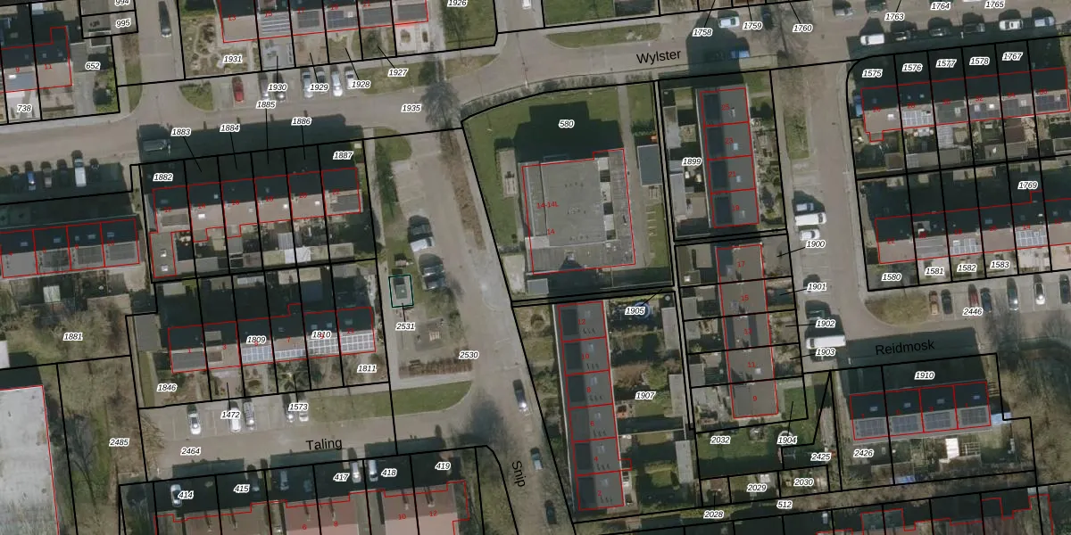 Het perceel waarop Snip 14-A staat heeft een oppervlakte van 1279 m². Dit is een zeer groot perceel. De perceeloppervlakte wordt geregistreerd door het Kadaster. Gedetailleerde informatie over de maten van dit perceel kunt u vinden in het rapport Kadastrale kaart met maatvoering van Snip 14-A.