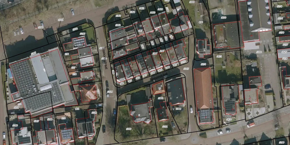 Het perceel waarop Spoorstraat 7 staat heeft een oppervlakte van 96 m². Dit is een klein perceel. De perceeloppervlakte wordt geregistreerd door het Kadaster. Gedetailleerde informatie over de maten van dit perceel kunt u vinden in het rapport Kadastrale kaart met maatvoering van Spoorstraat 7.