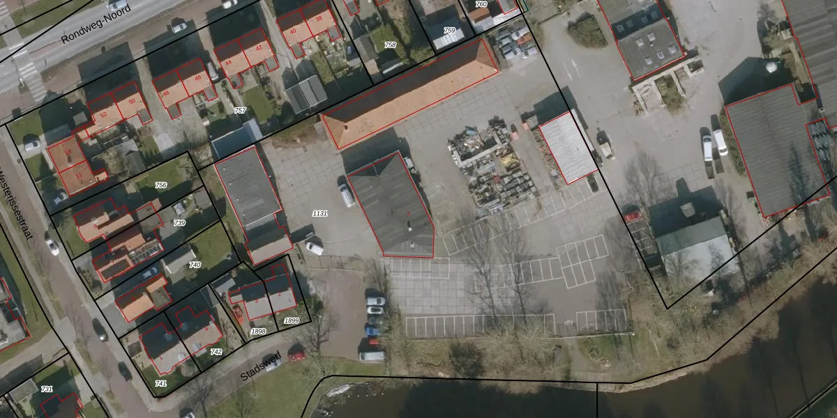 Het perceel waarop Stadswerf 1 staat heeft een oppervlakte van 1,2 ha. Dit is een zeer groot perceel. De perceeloppervlakte wordt geregistreerd door het Kadaster. Gedetailleerde informatie over de maten van dit perceel kunt u vinden in het rapport Kadastrale kaart met maatvoering van Stadswerf 1.