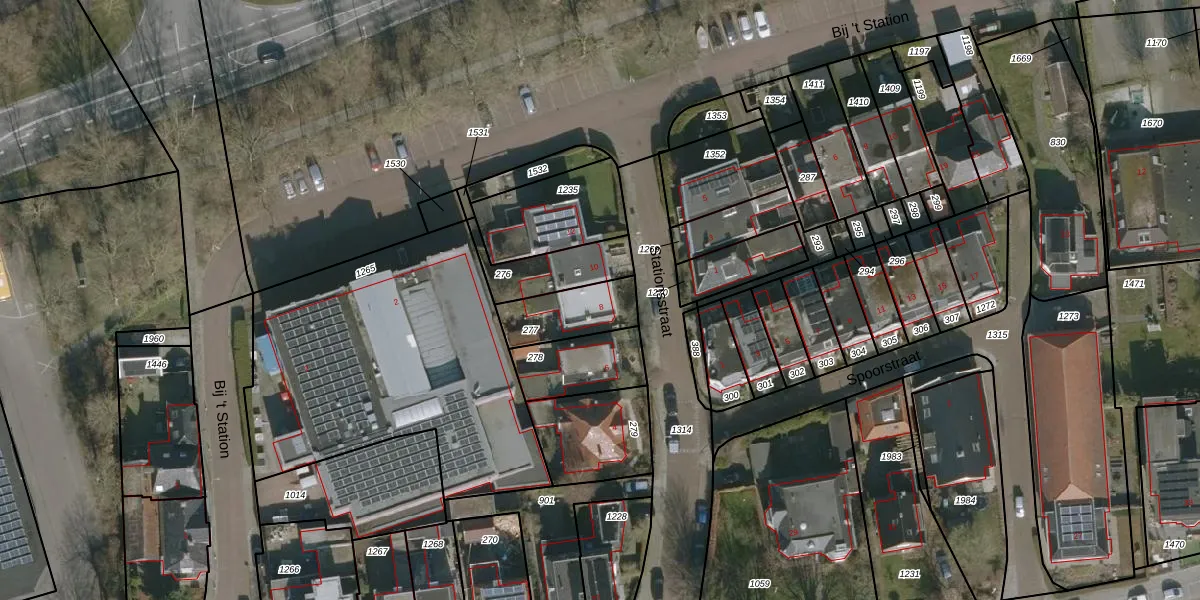 Gebruik de zoekbalk of klik op een perceel voor informatie over de adressen binnen dit perceel.