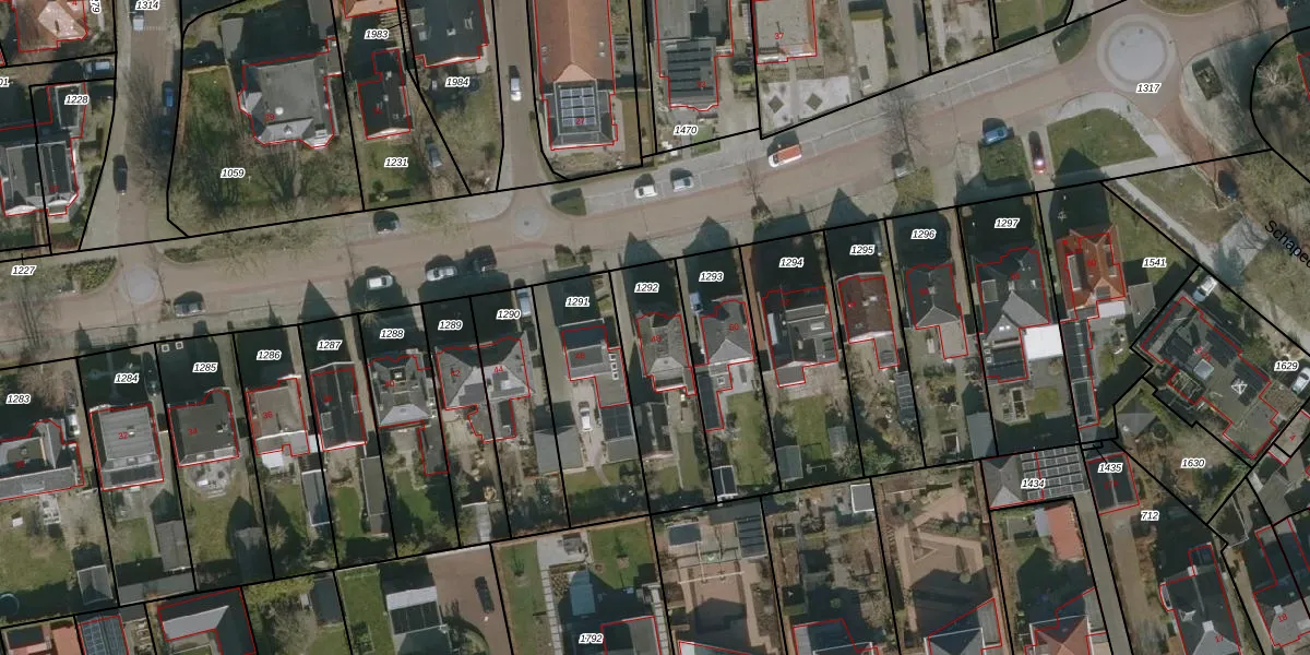 Gebruik de zoekbalk of klik op een perceel voor informatie over de adressen binnen dit perceel.