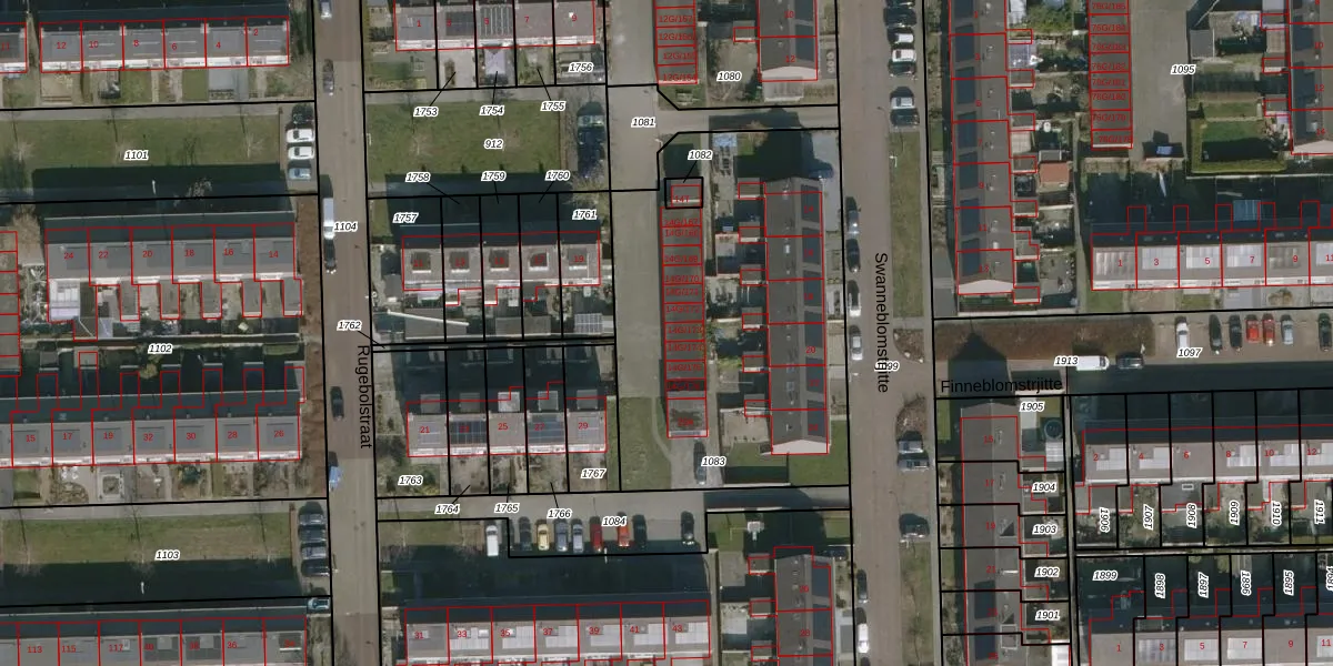 Swanneblomstrjitte 14-G173 is gelegen op kadastraal perceel DKM00B1083. Deze kadastrale aanduiding is uniek en wordt gebruikt door het Kadaster om eigendomsrechten en andere zakelijke rechten vast te leggen. Het perceel maakt onderdeel uit van de kadastrale gemeente Dokkum.