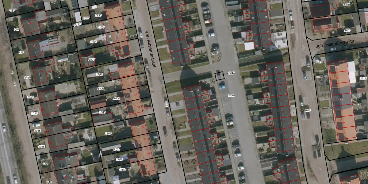 Het perceel waarop Van Aitsemastraat 13 staat heeft een oppervlakte van 9018 m². Dit is een zeer groot perceel. De perceeloppervlakte wordt geregistreerd door het Kadaster. Gedetailleerde informatie over de maten van dit perceel kunt u vinden in het rapport Kadastrale kaart met maatvoering van Van Aitsemastraat 13.
