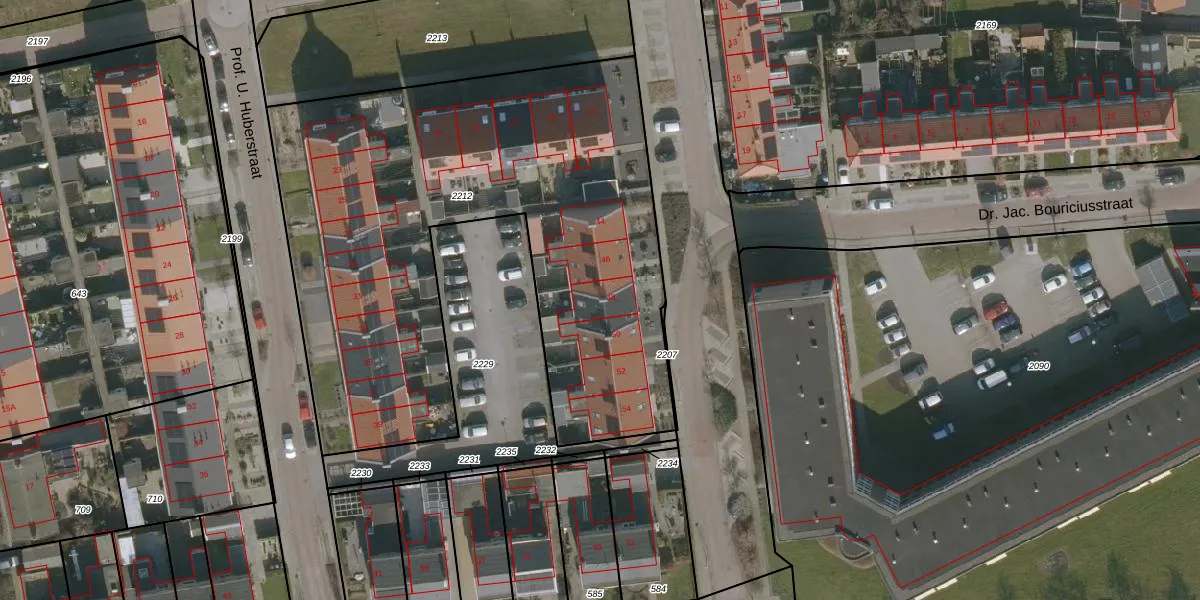 Het perceel waarop Van Kleffensstraat 48 staat heeft een oppervlakte van 3056 m². Dit is een zeer groot perceel. De perceeloppervlakte wordt geregistreerd door het Kadaster. Gedetailleerde informatie over de maten van dit perceel kunt u vinden in het rapport Kadastrale kaart met maatvoering van Van Kleffensstraat 48.