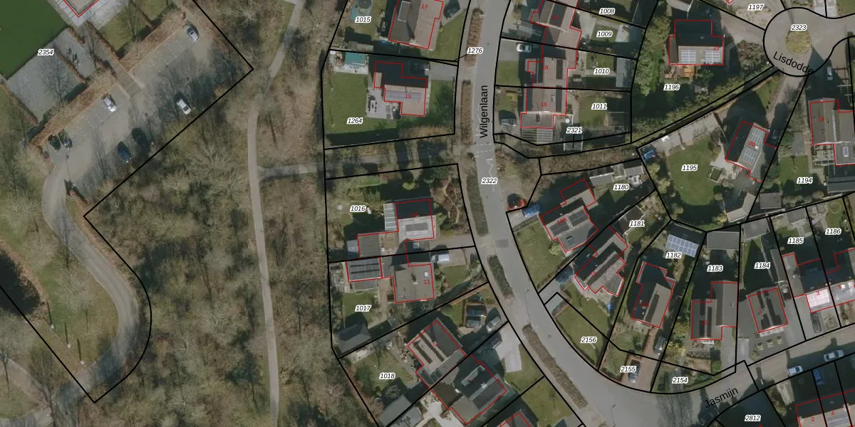 Gebruik de zoekbalk of klik op een perceel voor informatie over de adressen binnen dit perceel.