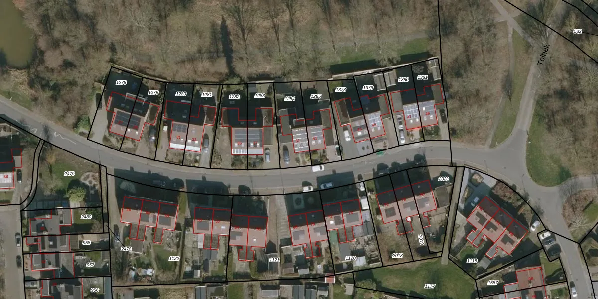 Gebruik de zoekbalk of klik op een perceel voor informatie over de adressen binnen dit perceel.