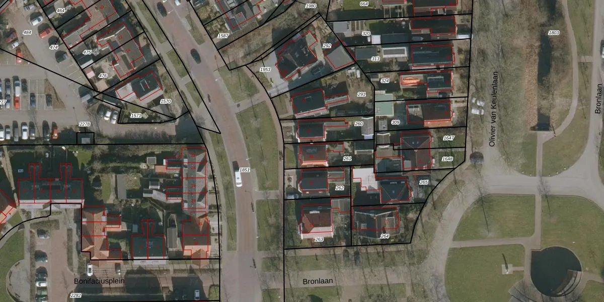 Gebruik de zoekbalk of klik op een perceel voor informatie over de adressen binnen dit perceel.