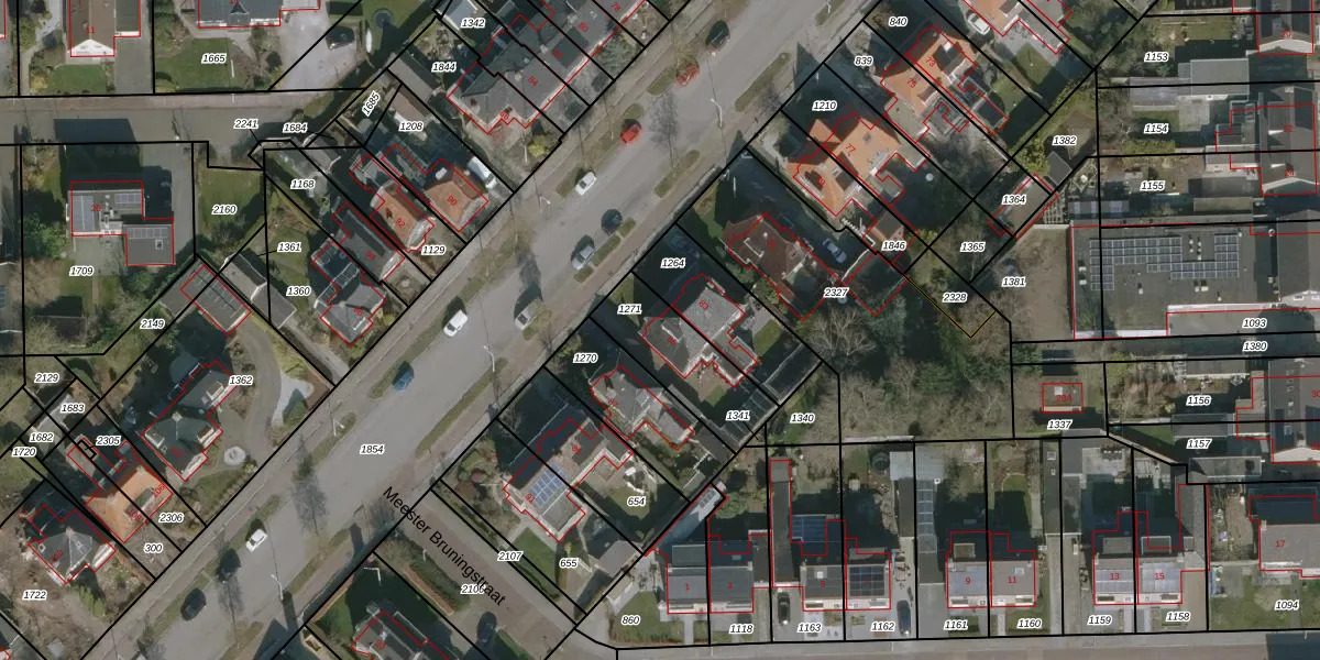 Gebruik de zoekbalk of klik op een perceel voor informatie over de adressen binnen dit perceel.