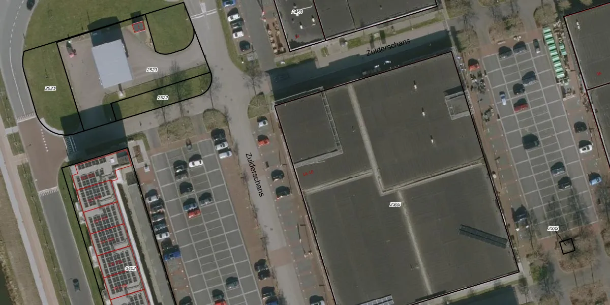 Het perceel waarop Zuiderschans 1-A staat heeft een oppervlakte van 4583 m². Dit is een zeer groot perceel. De perceeloppervlakte wordt geregistreerd door het Kadaster. Gedetailleerde informatie over de maten van dit perceel kunt u vinden in het rapport Kadastrale kaart met maatvoering van Zuiderschans 1-A.