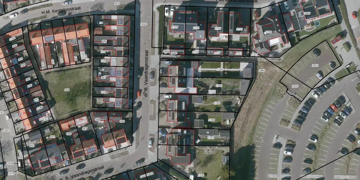 Het perceel waarop dr. B. Vaandragerstraat 5-A staat heeft een oppervlakte van 474 m². Dit is een groot perceel. De perceeloppervlakte wordt geregistreerd door het Kadaster. Gedetailleerde informatie over de maten van dit perceel kunt u vinden in het rapport Kadastrale kaart met maatvoering van dr. B. Vaandragerstraat 5-A.