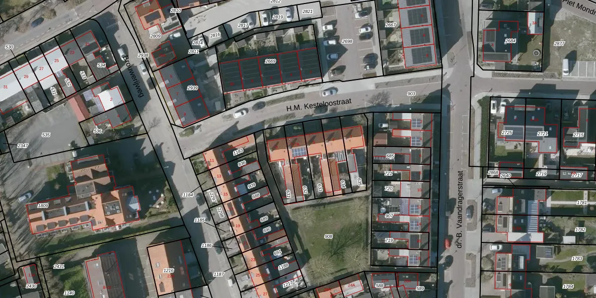 Het perceel waarop H.M. Kesteloostraat 7 staat heeft een oppervlakte van 165 m². Dit is een middelgroot perceel. De perceeloppervlakte wordt geregistreerd door het Kadaster. Gedetailleerde informatie over de maten van dit perceel kunt u vinden in het rapport Kadastrale kaart met maatvoering van H.M. Kesteloostraat 7.