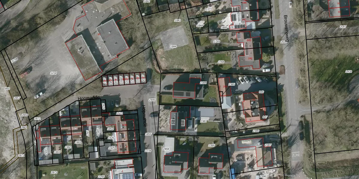 Gebruik de zoekbalk of klik op een perceel voor informatie over de adressen binnen dit perceel.