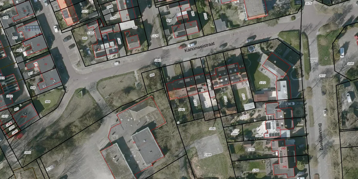 Kanonweistraat 32 is gelegen op kadastraal perceel DBG03F1842. Deze kadastrale aanduiding is uniek en wordt gebruikt door het Kadaster om eigendomsrechten en andere zakelijke rechten vast te leggen. Het perceel maakt onderdeel uit van de kadastrale gemeente Domburg.