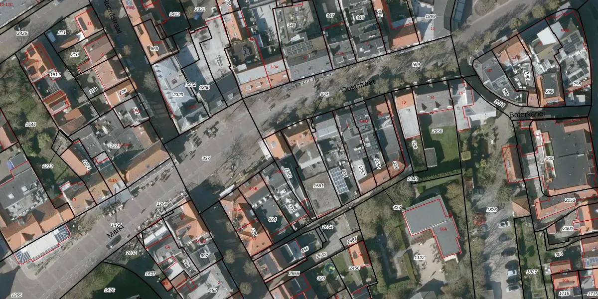 Ooststraat 2 is gelegen op kadastraal perceel DBG03F1581. Deze kadastrale aanduiding is uniek en wordt gebruikt door het Kadaster om eigendomsrechten en andere zakelijke rechten vast te leggen. Het perceel maakt onderdeel uit van de kadastrale gemeente Domburg.
