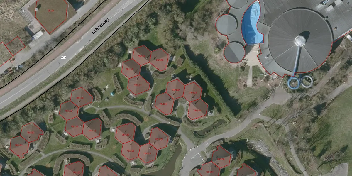 Het perceel waarop Schelpweg 7-B-122 staat heeft een oppervlakte van 8,4 ha. Dit is een zeer groot perceel. De perceeloppervlakte wordt geregistreerd door het Kadaster. Gedetailleerde informatie over de maten van dit perceel kunt u vinden in het rapport Kadastrale kaart met maatvoering van Schelpweg 7-B-122.